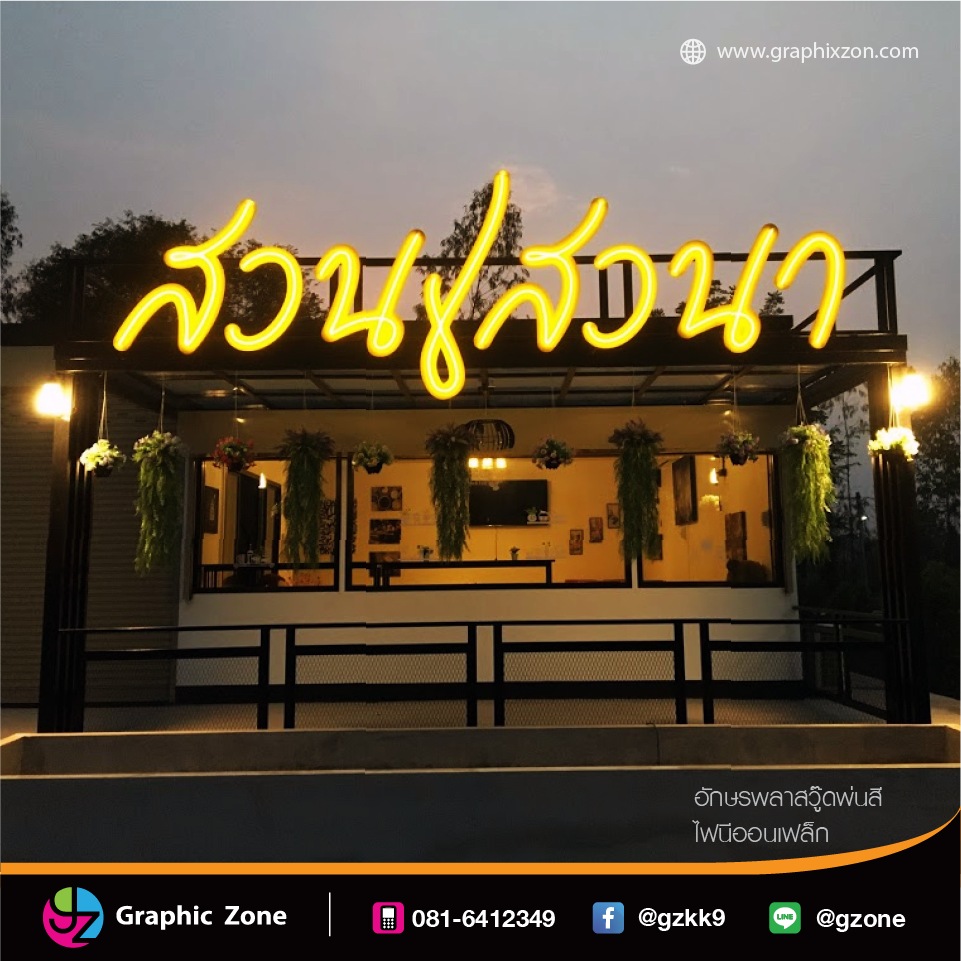 ป้ายตัวอักษรไฟนีออน → ให้ความรู้สึกชิคๆ เหมาะกับร้านคาเฟ่