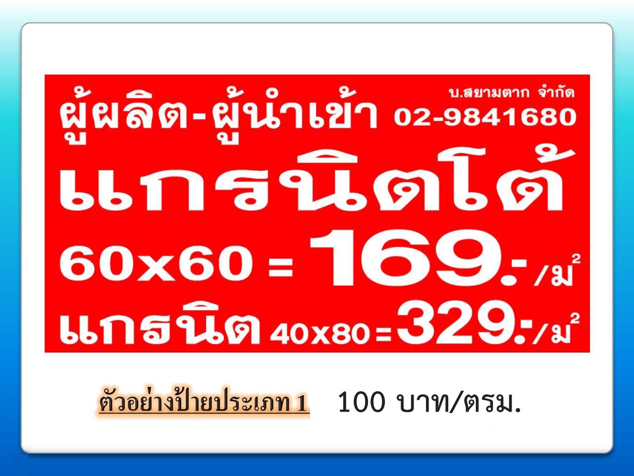 ป้ายที่ติดบนพื้นที่ขนาดใหญ่ๆ จะคิดแค่ความกว้าง x ความยาว ของตัวอักษรและโลโก้